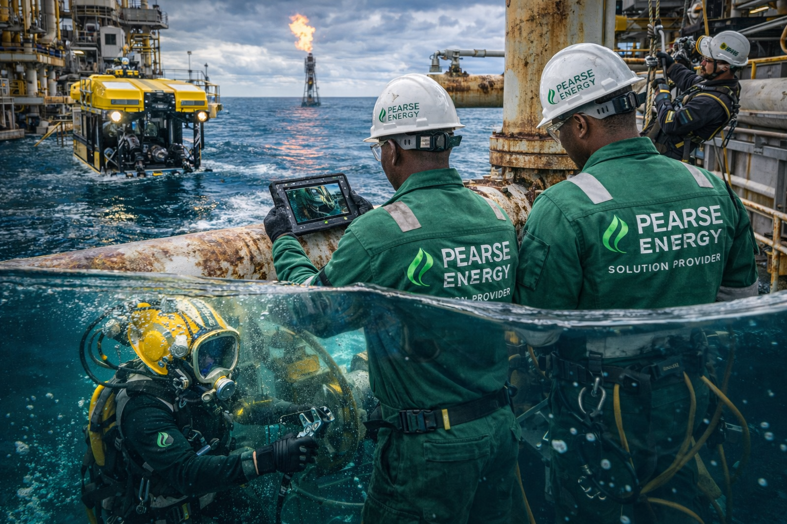 With highly trained divers, certified subsea specialists, and advanced inspection technologies such as ROV systems and underwater NDT tools, Pearse Energy ensures safe execution and reliable performance in demanding offshore conditions.